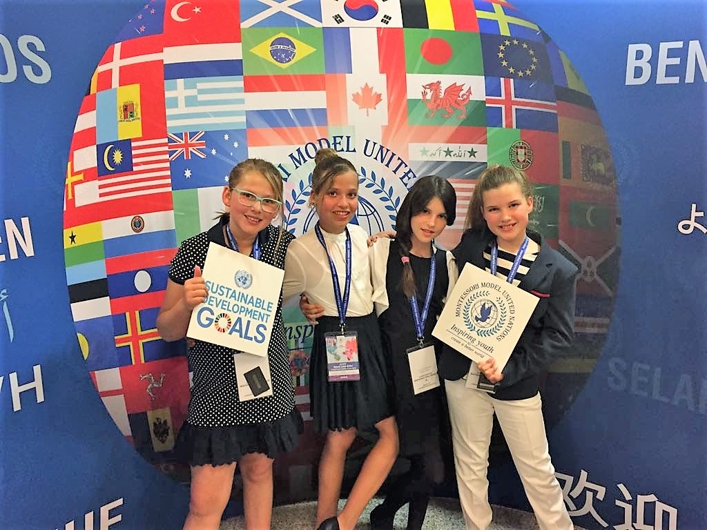 Young diplomats in action. Through Global Perspectives, debate, and the Montessori Model United Nations (MMUN), students learn to think critically and act responsibly as world citizens.